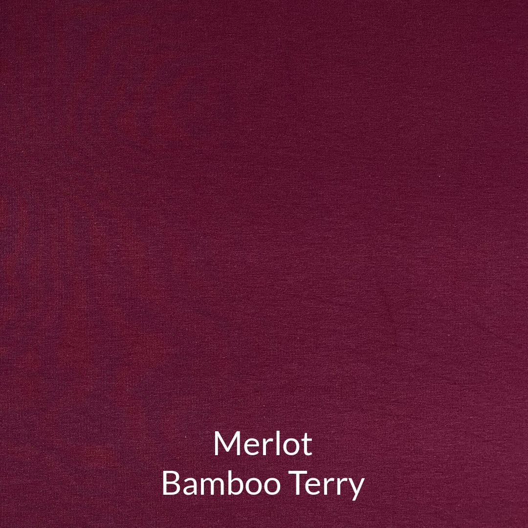 Merlot Bamboo French Terry. $9.00. Piece is 19.5" long with full width. There is a test hole at the fold outside of the measured length. Fabric is 60" wide,