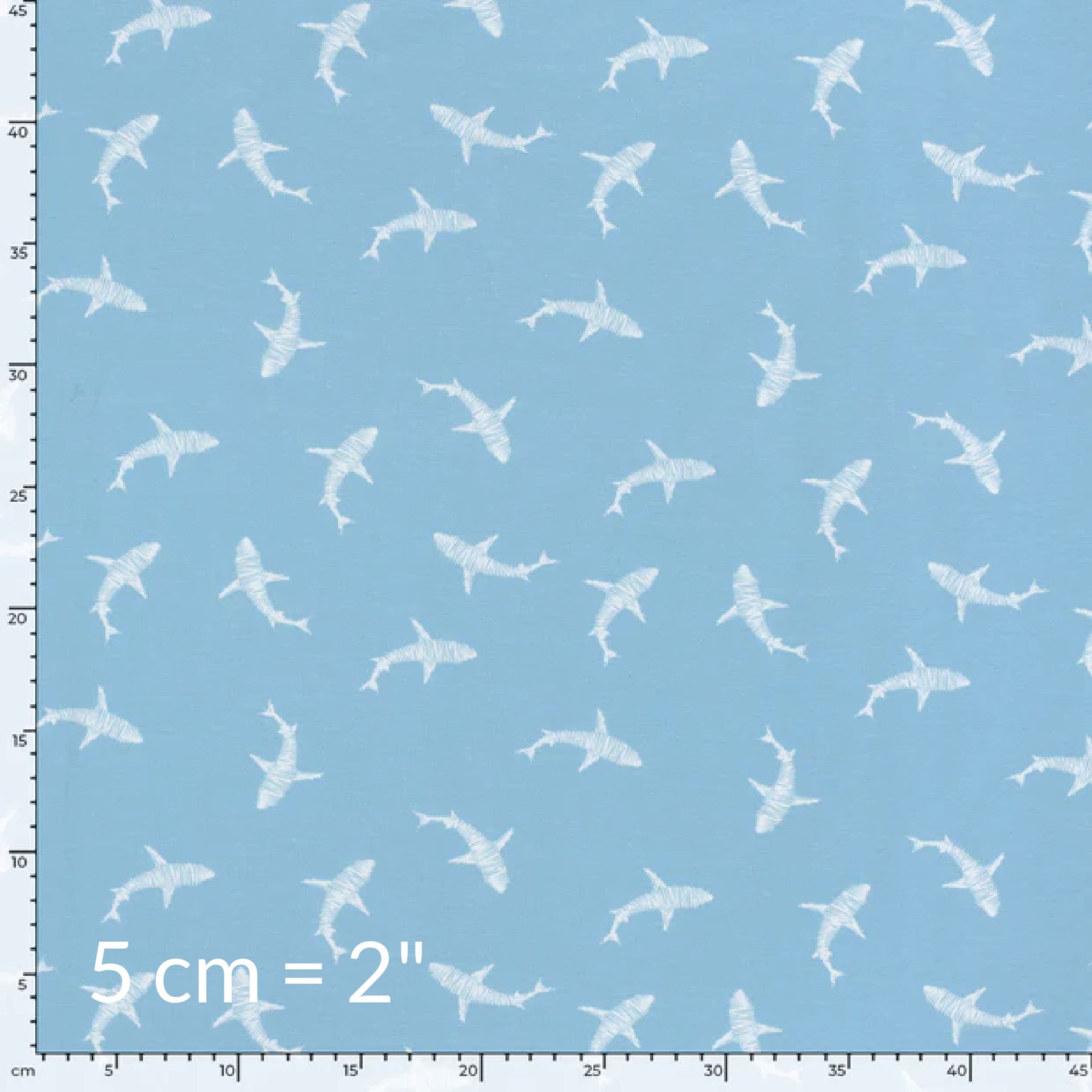 Euro Knit jersey Light Blue Sharks. $9.00. Piece is 15" long and has a mark at one cut edge 19" from the selvedge. Fabric is 59" wide