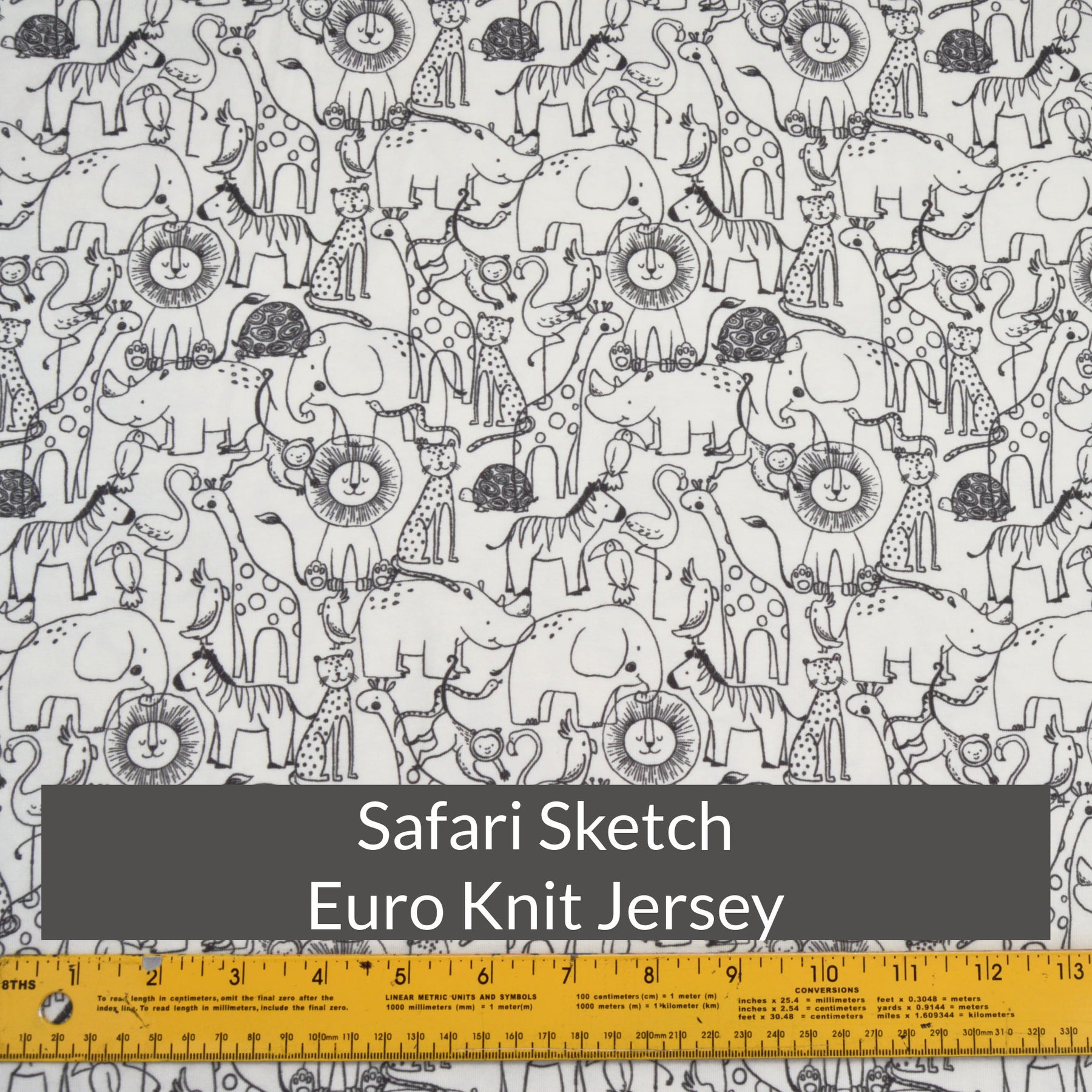 Eruo Knit jersey Safari Sketch. $7.00. Piece is 13" long. Fabric is 59" wide