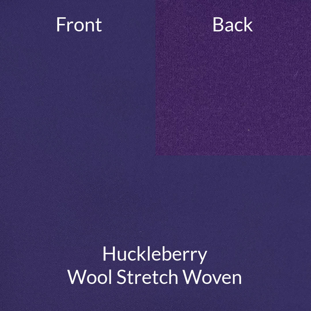 Huckleberry Wool Stretch Woven. $23.00. Piece is 70" long. Fabric is 70% Nylon 25% Wool 5% Elastane, 54" wide (huckleberry), 15.1 oz/sq yd | 514 gsm, 4-way stretch: 20% side-to-side 25% lengthwise.